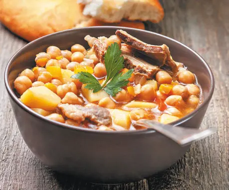 Вода, Баранина, Нут, Картофель, Помидоры, Перец болгарский, Лук репчатый